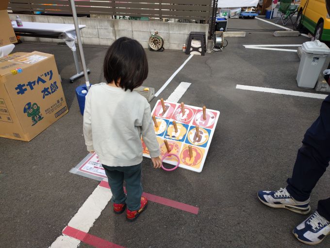 子どもたちは、おまつりの屋台でゲームに挑戦したり、消防団のお兄さんお姉さんに消防車に乗せてもらったりして楽しみました。